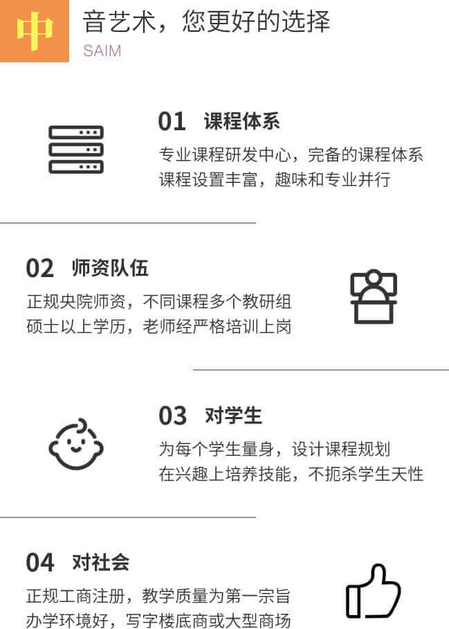 北京中音艺术少儿艺术是一所集启蒙教育、少儿才艺培训、艺术课程研发、参赛演出等为一体的综合性艺术教育培训学校。我们通过自主研发的特色课程、精彩的课堂展示和国内外演出比赛,为学生创造多元化艺术环境、提供广阔的舞台。
