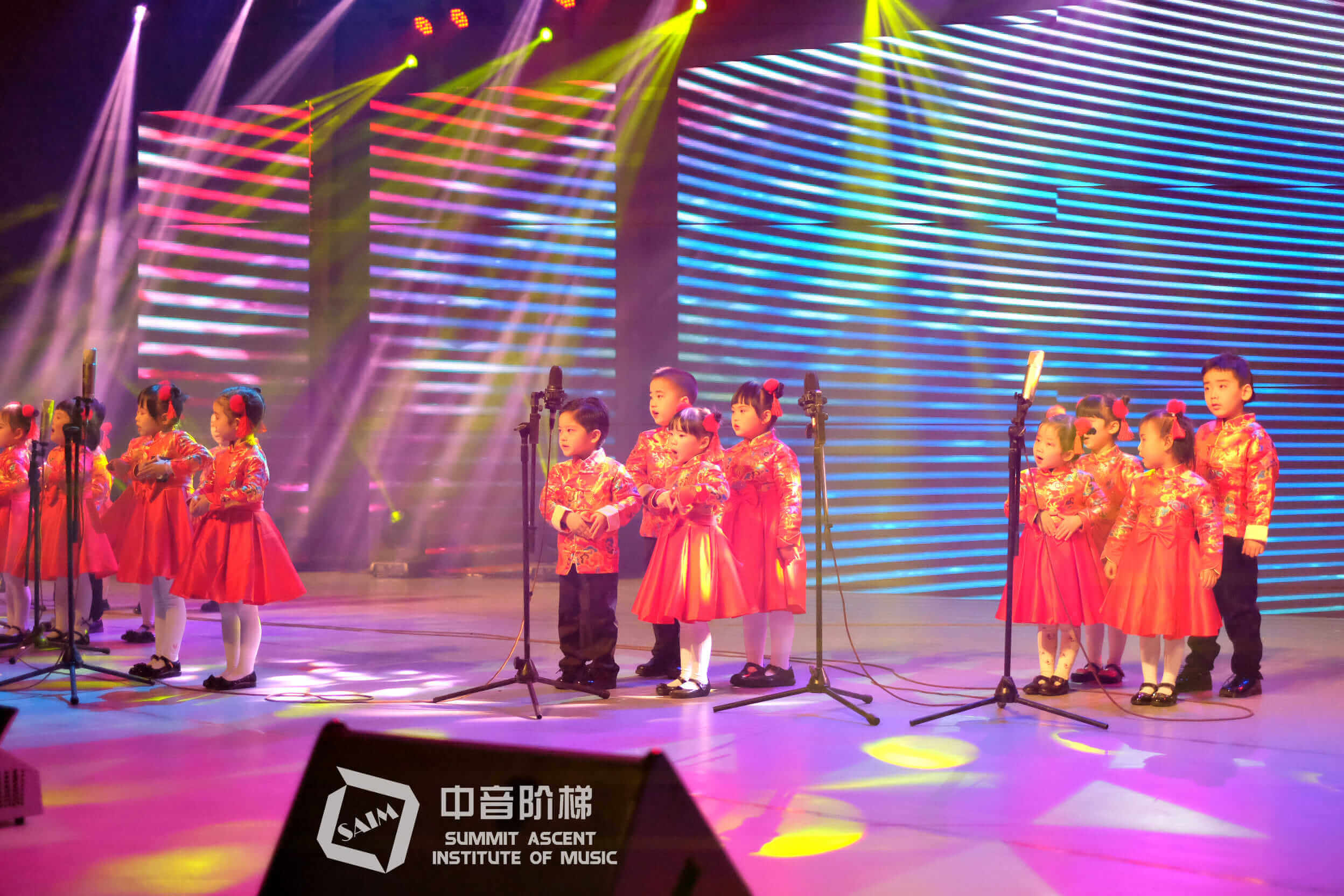 近年来中音艺术逐层选拔有歌唱能力、合唱兴趣与追求的优秀学员,倾力打造出了一支杰出且具有代表性的童声合唱团。合唱团不仅全程提供免费集训、排练,还会不定期举行汇报表演、参与各类音乐活动。通过切身的舞台实践对孩子的音乐水平、价值导向、心智发展、音乐审美等综合素质带来加强,让孩子更优秀!