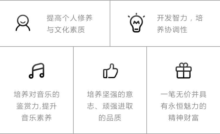 采取小组课的形式,主线教材搭配乐理基础知识和丰富的课堂实践,加强学员在钢琴技能、音乐创造力、艺术修养、文化素质等全方面的艺术造诣。