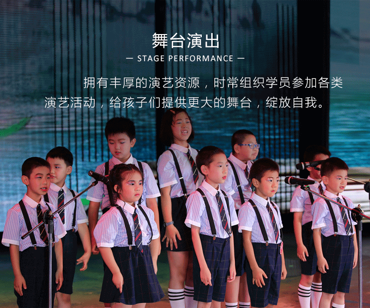 — STAGE PERFORMANCE —少儿艺术培训拥有丰厚的演艺资源,时常组织学员参加各类演艺活动,给孩子们提供更大的舞台,绽放自我。